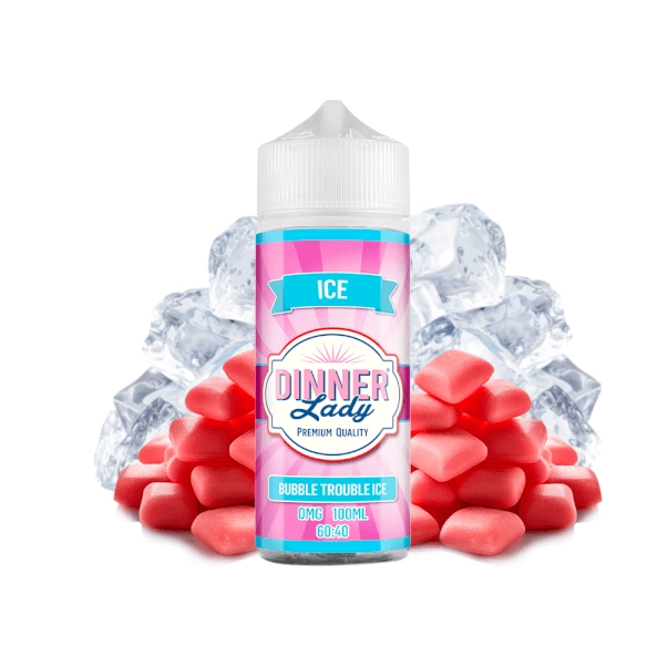 Dinner Lady Bubble Trouble Ice 100ml. ¡un toque afrutado fresco! Fresas maduras y jugosas mezcladas con un dulce sabor a chicle acompañado del frio hielo para un vapeo realmente satisfactorio.